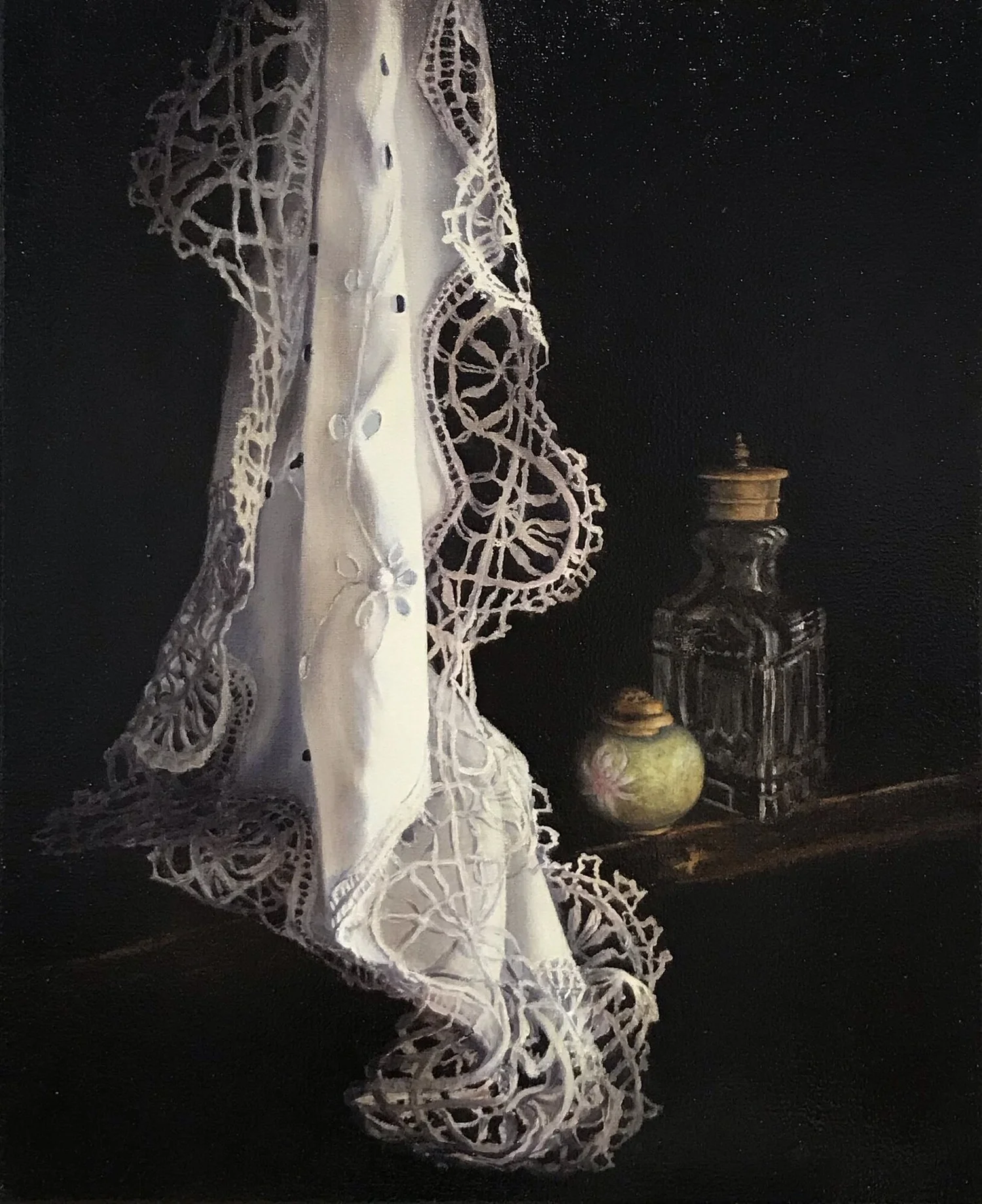 Commissioned work: Antique lace and glass 1, 2016